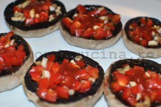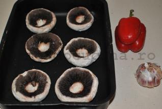 Spalati si curatati ciupercile, pastrati doar palariile. Presarati sare si piper peste ele. Umpleti-le cu ardei tocat si felii de usturoi (putin, daca e vorba de o cina romantica ;) ).